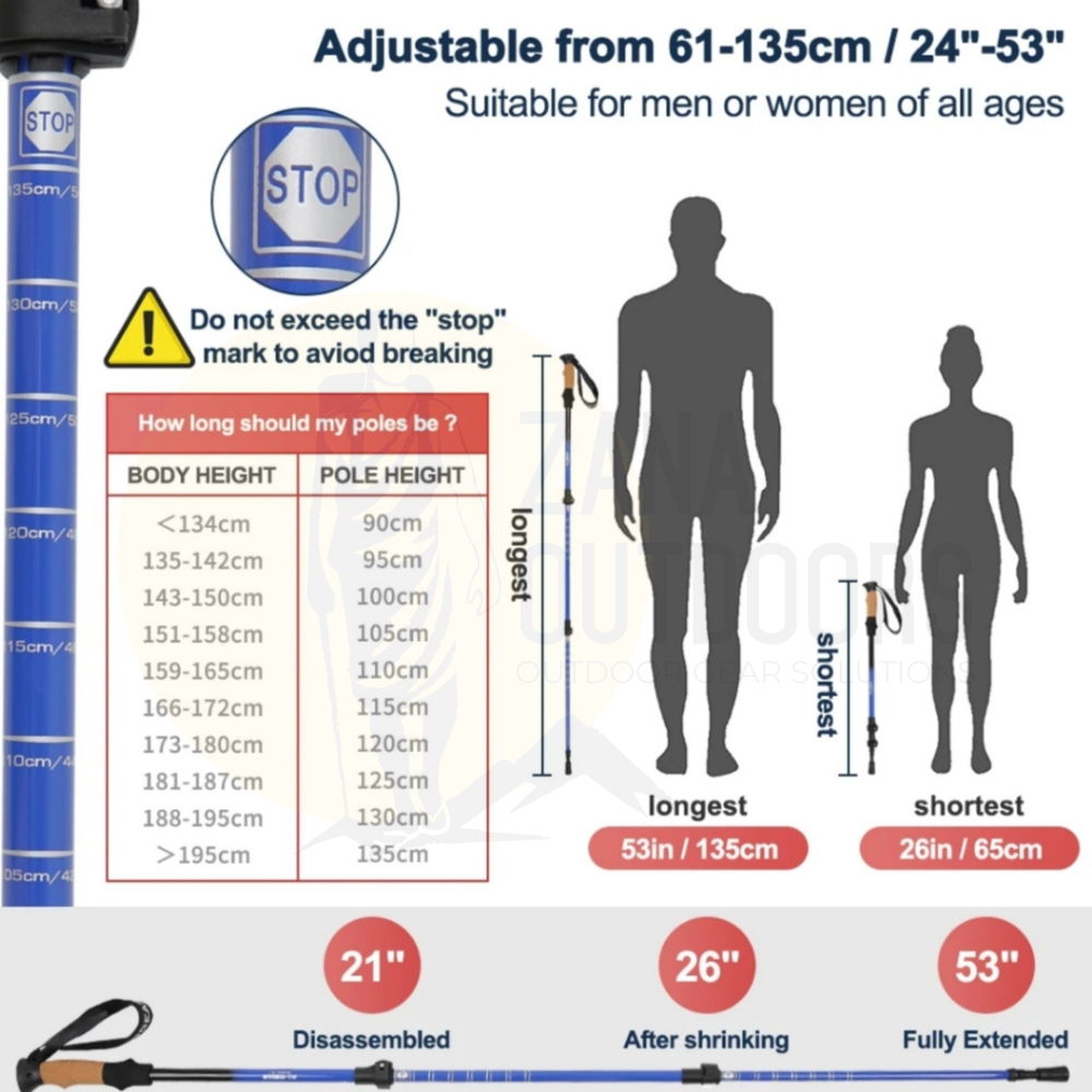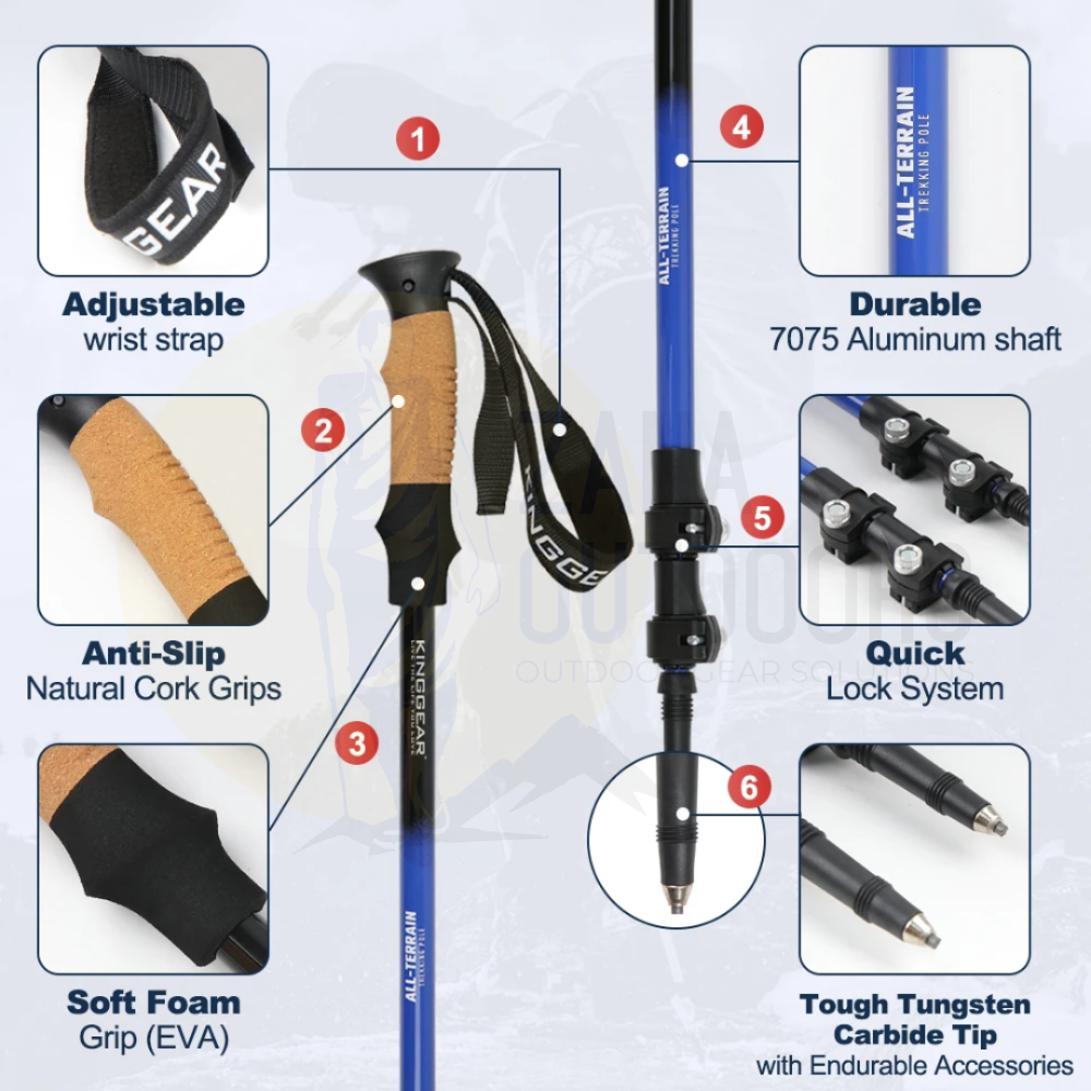 Tackle any trail, rocky, steep, or snowy with confidence using Hiking Poles. Built to handle all kinds of landscapes, these poles are lightweight, durable, and designed with your comfort in mind.
