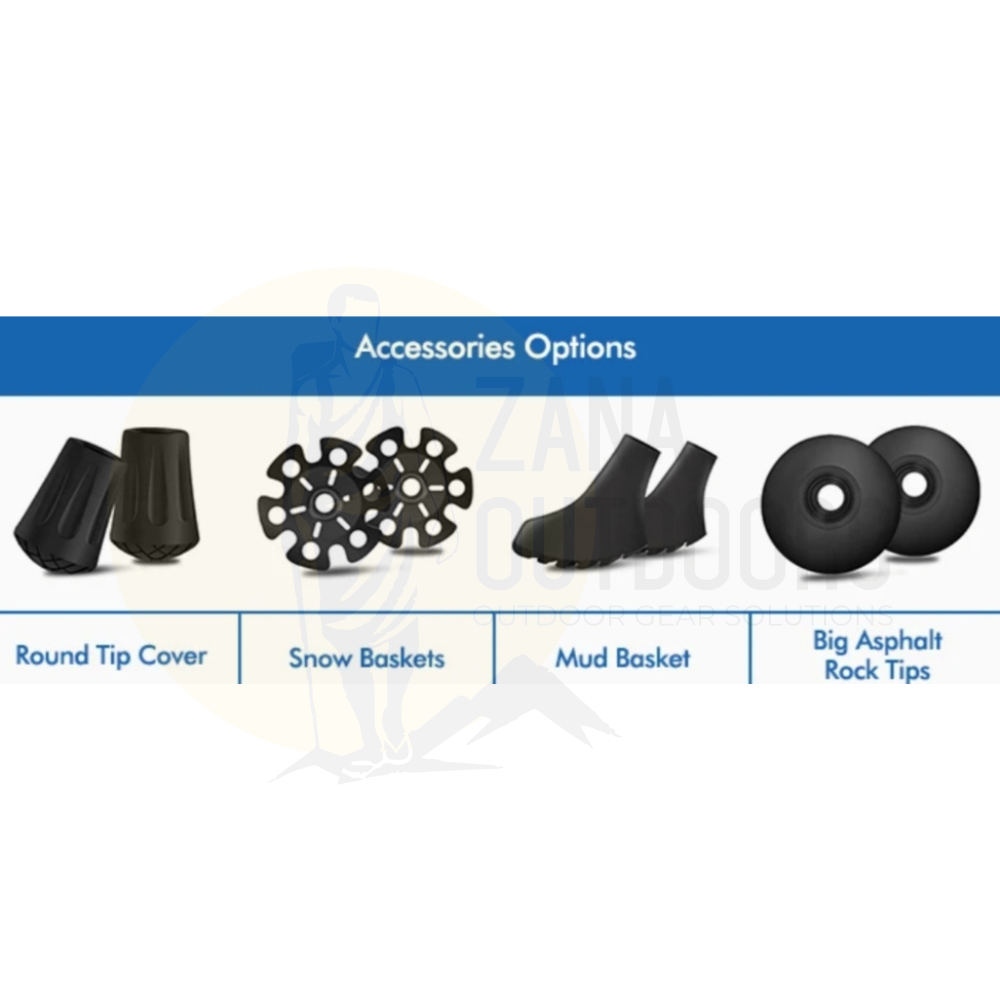 Comes with interchangeable tips for different surfaces (snow, mud, rock)